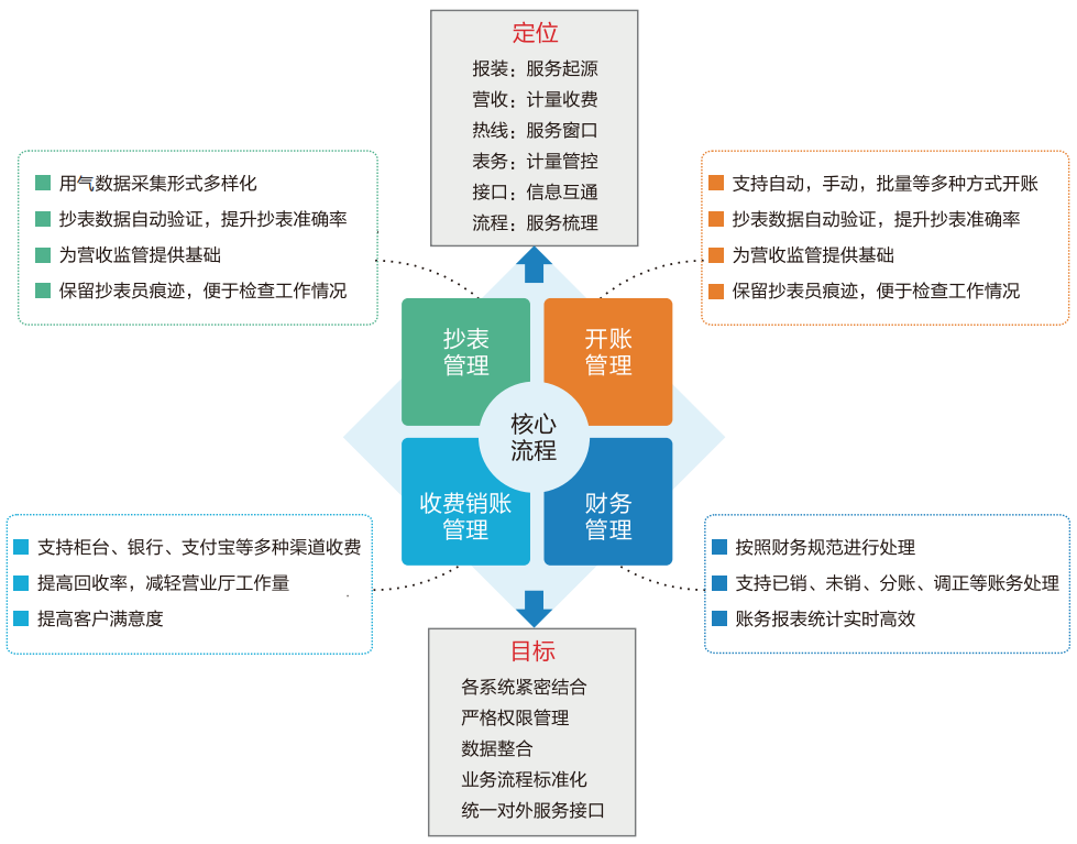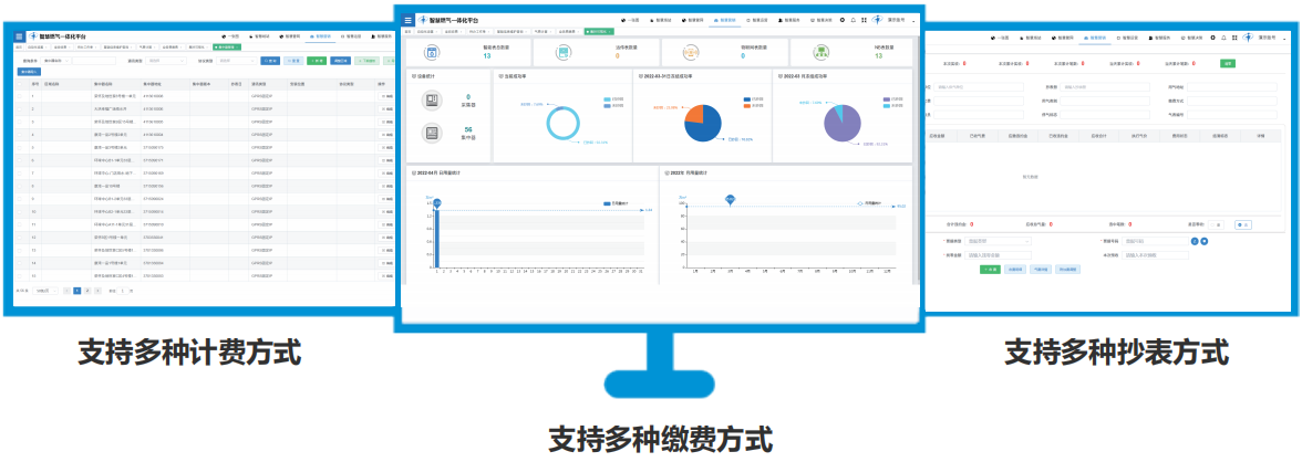 IC卡充值、远程预付费、后付费、账户预存多种收费方式。